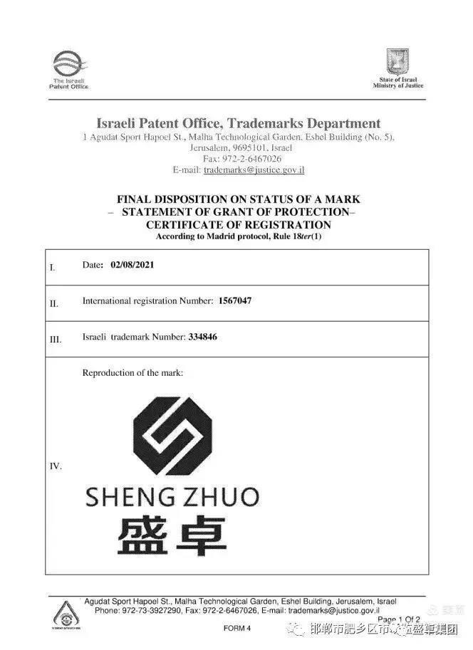 近日,从肥乡区市场监管局获悉,经肥乡区市场监管局与河北太阳兄弟知识产权代理有限公司对接,河北盛卓集团公司的“盛卓”商标申报国际马德里商标再有新突破。“盛卓”商标已成功在以色列注册,一举改写了肥乡无国际商标的历史。表明“盛卓”品牌正式走出国门,走向世界。同时,盛卓公司还在格鲁吉亚、土耳其、巴林、印度、文莱、柬埔寨、埃及、伊朗等***申请注册国际商标。